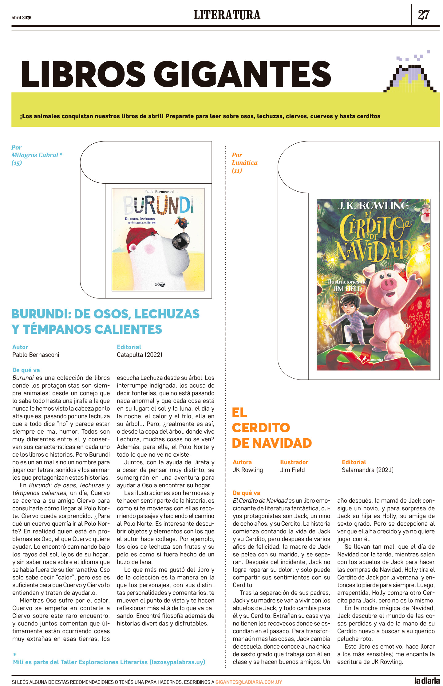 Publicado el abril 22, 2026abril 22, 2026 por Lazos y Palabras Burundi. De osos, lechuzas y témpanos calientes. Navegación de entradasAnterior: LABORATORIO Especial – Un golpe a los libros